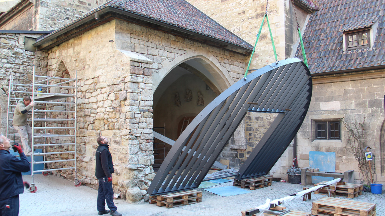 Die Ausführung hatte Metallbau Jörg Otto aus Halle/Saale übernommen – und für das Baubronzeportal den Metallbaupreis 2021 gewonnen. Herzlichen Glückwunsch!